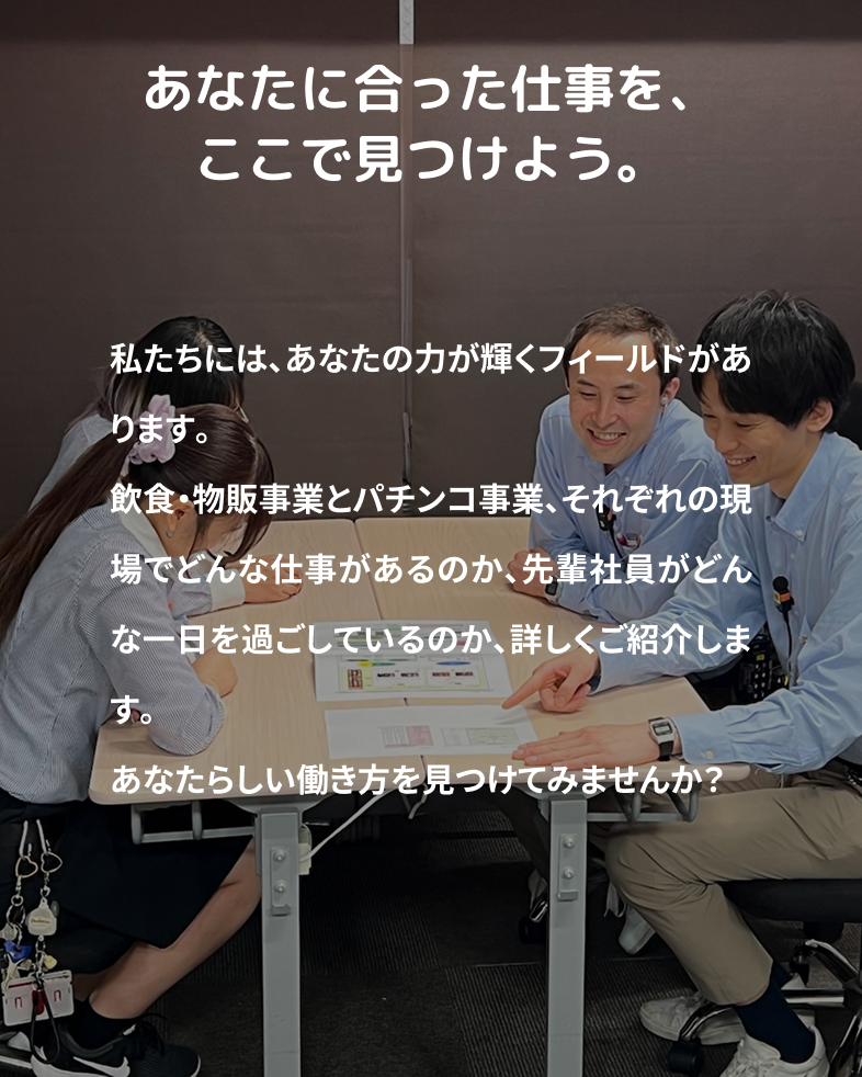 遊びを提供するには、まず自分が楽しまないと!」そんな想いで、私たちはお客様に最高のエンターテインメント空間を提供しています。あなたのキャリアをスタートしませんか?