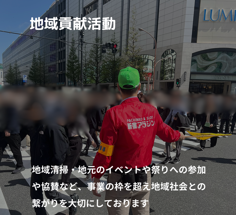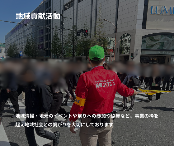 パチンコ部門、飲食・物販部門、管理部門による三位一体のチームワークを基盤に、互いに支え合いながら柔軟に動き、相乗効果を発揮。